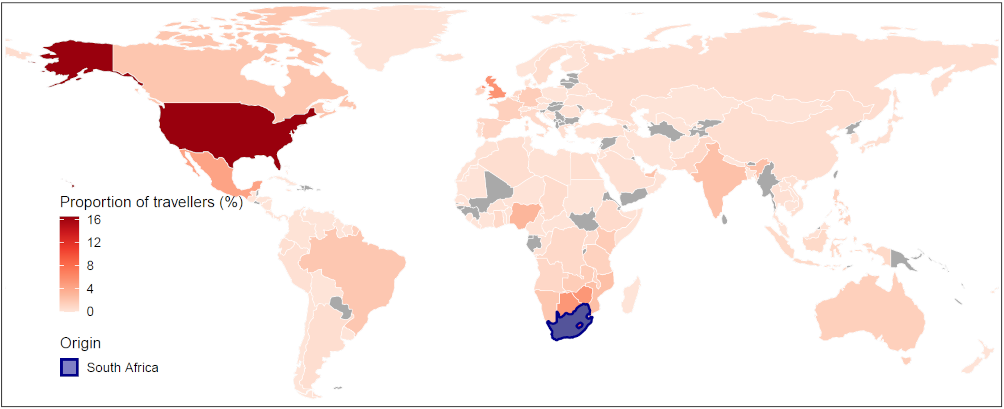 Table 2. Top 30 ranked countries or regions receiving international travellers from South Africa in October – December 2020.